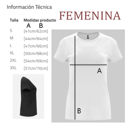 Calidades: UNISEX: Camiseta de manga corta. Cuello redondo de 4 capas en canalé 1×1 con cubrecosturas de hombro a hombro. Costuras laterales. Material: 100% algodón, punto liso, 165 g/m². FEMENINA: Camiseta de manga corta entallada. Cuello redondo en canalé 1×1 con cubre costuras interior. Costuras laterales. Material: 100% algodón, punto liso, 170 g/m²