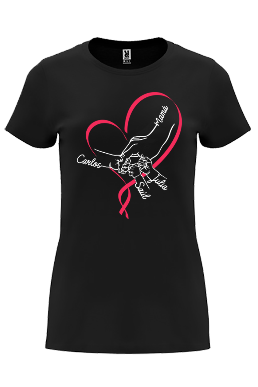 👕 Diseño exclusivo con las manos entrelazadas de mamá y hasta tres hijos.