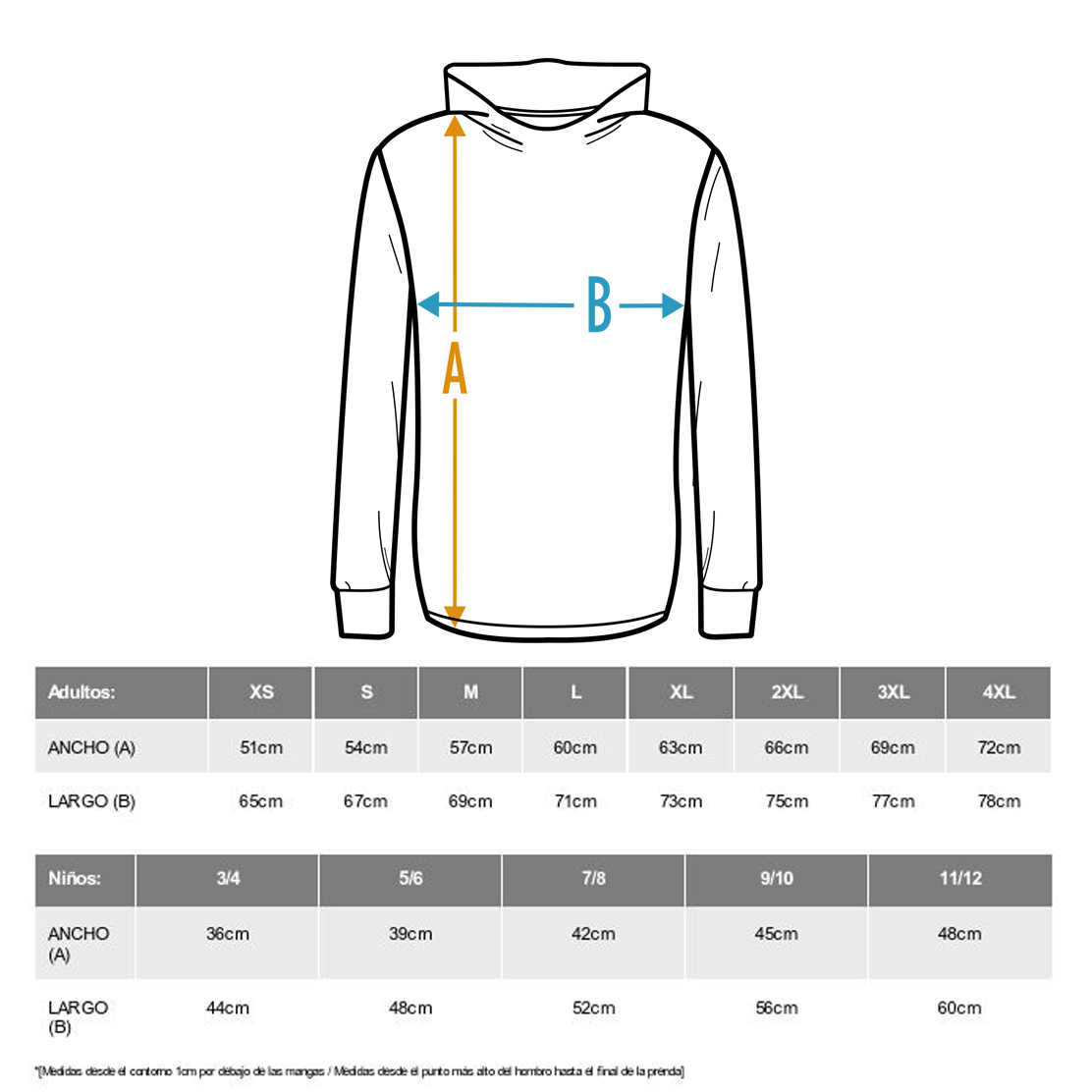 Calidades: Sudadera con capucha de doble tejido, con cordón ajustable, en acabados sólido y bicolor. Cubrecosturas en el cuello y bolsillo canguro. Punto canalé con elastano 1×1 en puños y cintura. Consulta colores disponibles