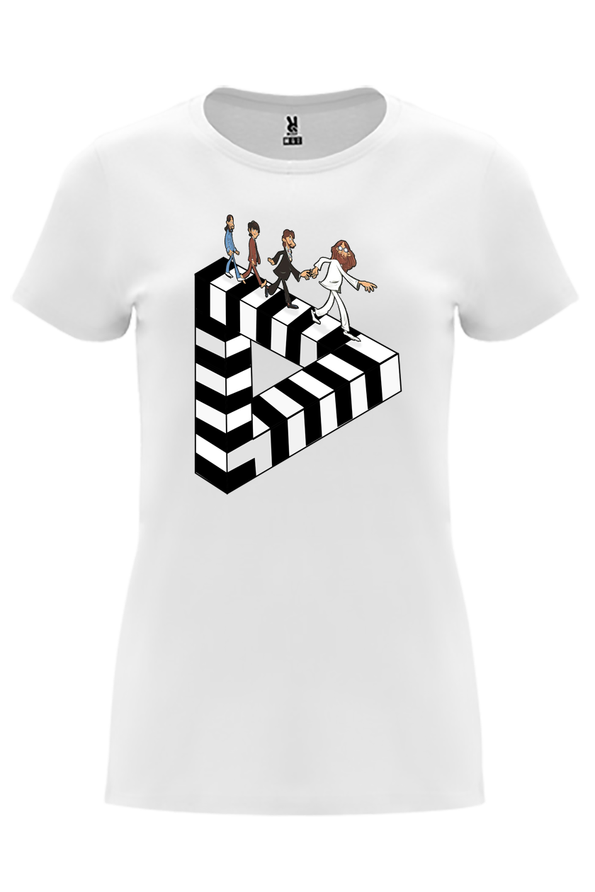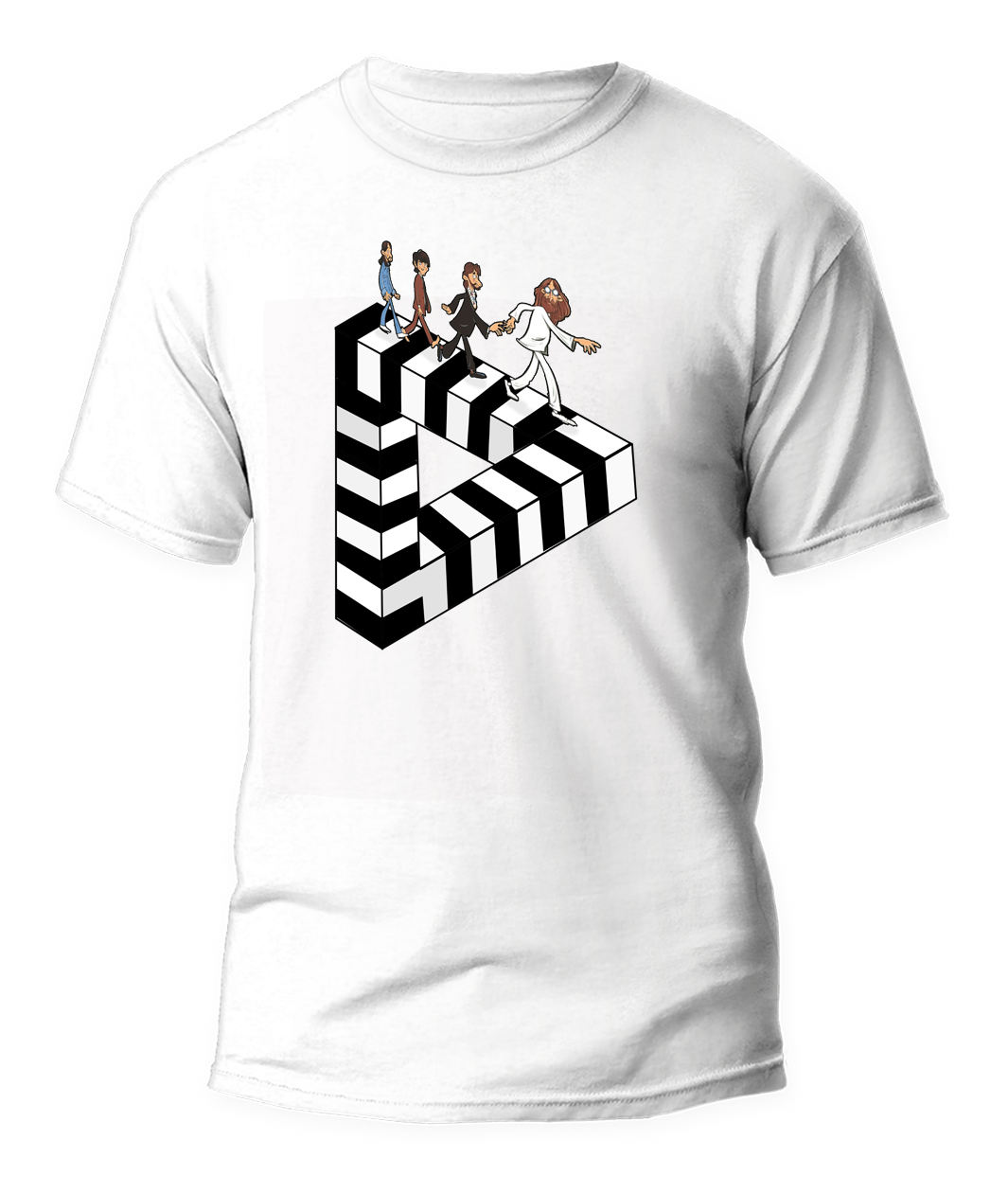 Reinventa un clásico con esta camiseta, que fusiona la icónica imagen de Abbey Road con un ingenioso efecto de ilusión óptica. Los cuatro músicos avanzan sobre un paso de cebra imposible, desafiando la lógica visual en un diseño único y llamativo. Ideal para fans de la música, el arte y las perspectivas que engañan al ojo.